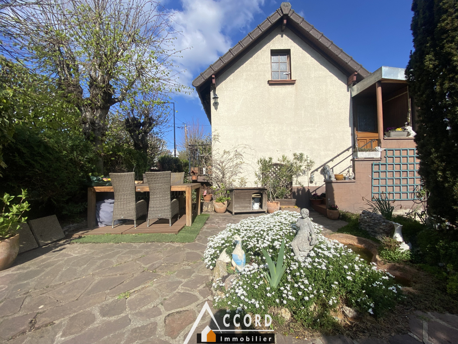 SARTROUVILLE - QUARTIER DIX ARPENTS - Emplacement numéro 1 - À 12 minutes à pied de la gare, charmante maison de plain-pied de deux pièces avec sous-sol total comprenant : une entrée, grand séjour, cuisine équipée US, salle d'eau avec WC, une chambre. Au sous-sol nous avons une grande pièce, atelier, cellier, WC et vasque. Le tout édifié sur 170 m² de terrain. À voir rapidement ! Elle ne restera pas longtemps dans notre vitrine.